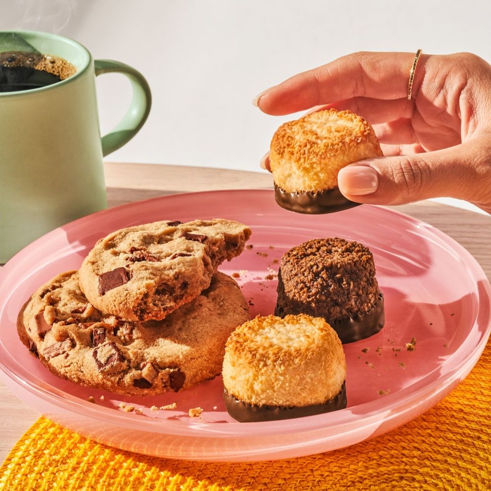 Three deliciously crafted macaroons. Pick from Coconut Macaroon and Chocolate Coconut Macaroon flavors.